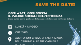 SAVE THE DATE! “Ogni watt, ogni goccia. Il valore sociale dell’efficienza” linee guida per la gestione dell’acqua e dell’energia nel terzo settore, Roma, 4 maggio