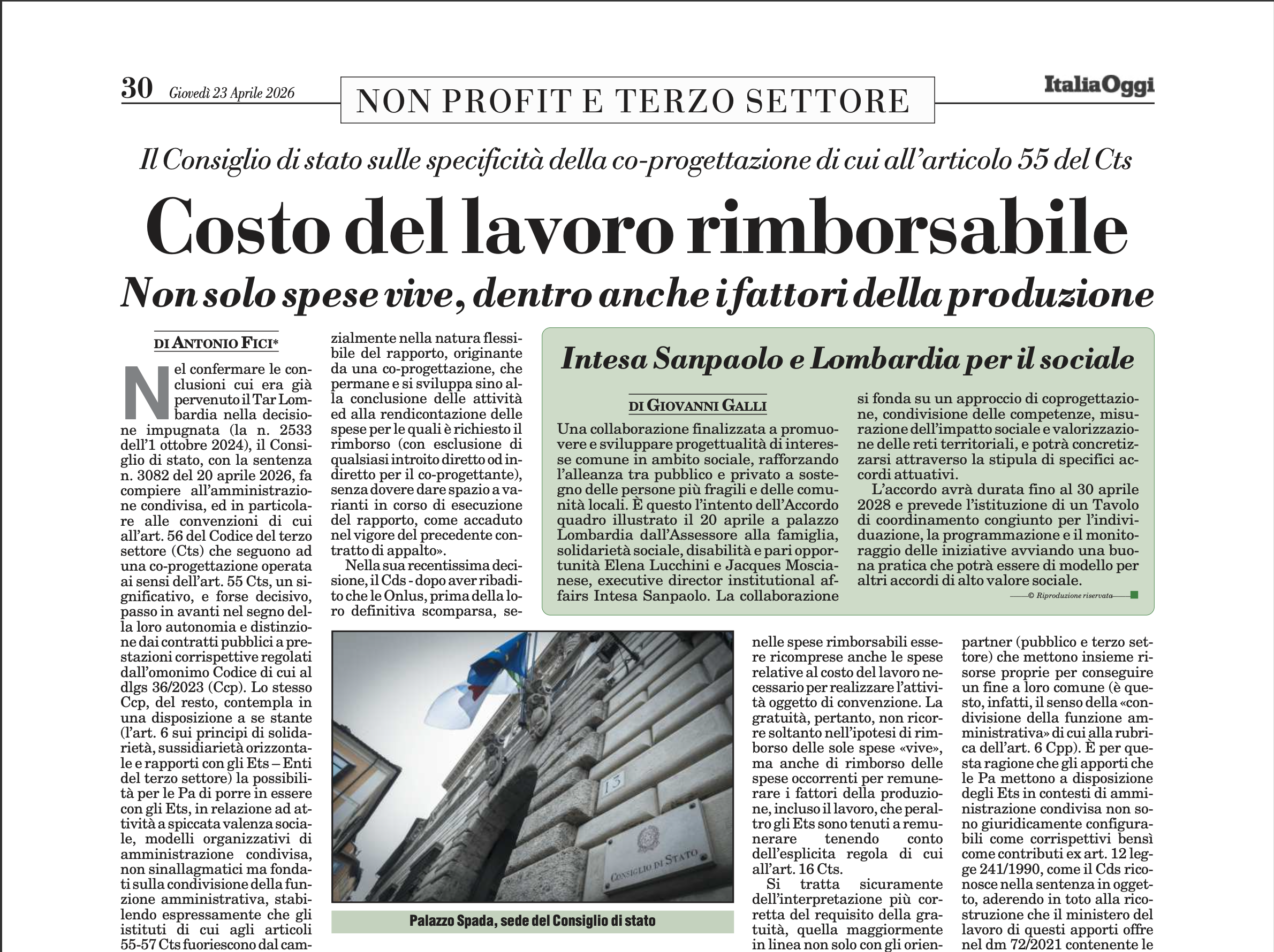 di Antonio Fici, pubblicato in «ItaliaOggi» di giovedì 23 Aprile 2026, pag. 30