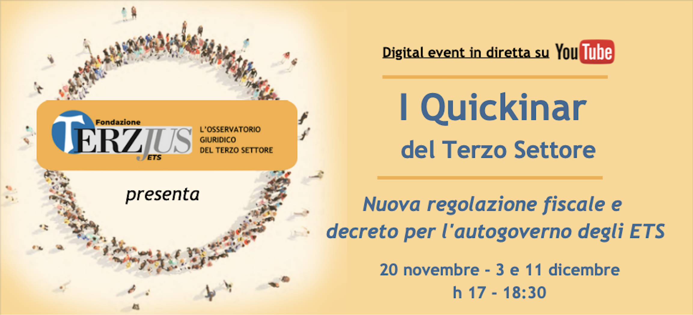Una serie di eventi digitali in diretta YouTube per approfondire le novità fiscali e giuridiche della riforma del Terzo Settore con esperti del settore